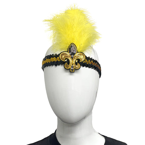 Black and Gold Sequin Headband with Fleur de Lis and Feathers (Each)