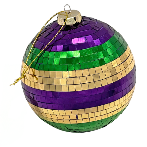 100mm Mardi Gras Stripe Mirror Ball Ornament