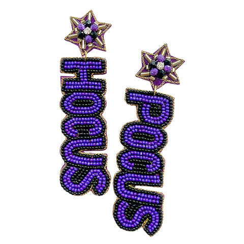 Magical Design: These Hocus Pocus purple seed beaded felt back dangle earrings feature a whimsical design inspired by the enchanting world of magic and spells, perfect for embracing the Halloween spirit.