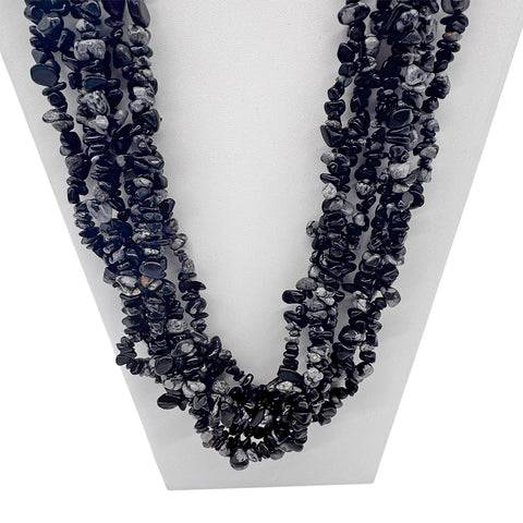 27" Snowflake Obsidian Stone Necklace (Pack of 6)