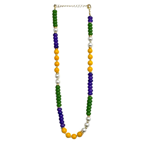 Mardi Gras and Clear Glass Color Block Beaded Necklace (Each)