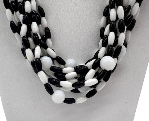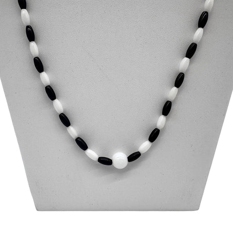 27" Black and White Glass Bead Necklace