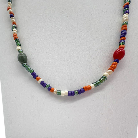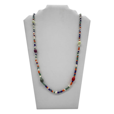 27" Orange and Blue Multicolor Glass Bead Necklace