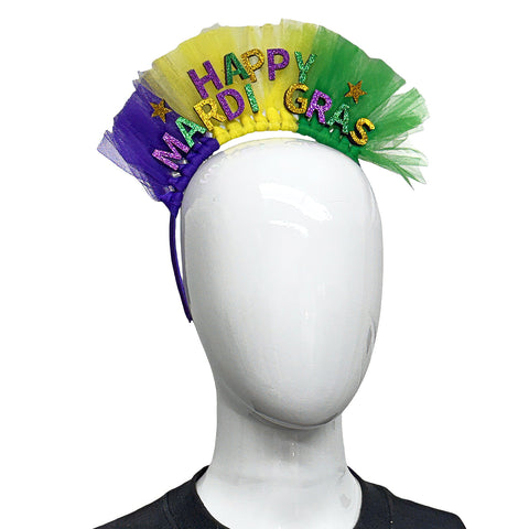 Happy Mardi Gras Purple, Green, and Gold Tulle Headband (Each)