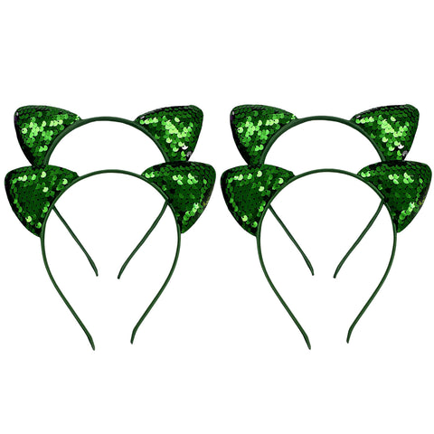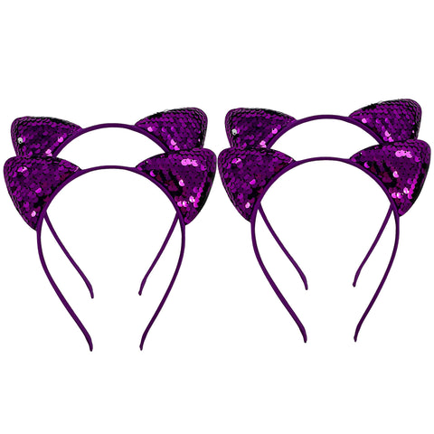 Mardi Gras Purple, Yellow, and Green Sequin Cat Ear Headband (Pack of 12)