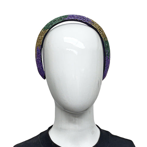 Vibrant Ombre Design: This headband features a stunning ombre effect with beads transitioning from purple to green to gold, creating a vibrant and eye-catching accessory that perfectly captures the festive spirit of Mardi Gras.