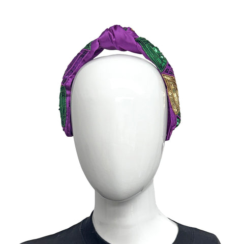 Purple Mardi Gras Sequin Bead Knot Headband (Each)