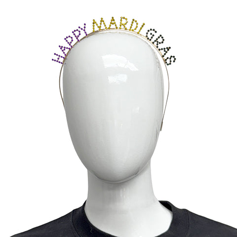 Celebratory Design: This headband features dazzling rhinestones spelling out "Happy Mardi Gras", adding a touch of sparkle and festivity to your Mardi Gras ensemble.