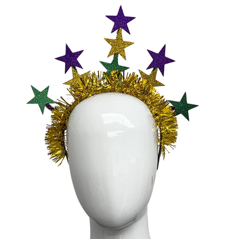 Festive Star Design: This headband features bright stars and colorful tinsel, embodying the vibrant spirit of Mardi Gras and adding a playful touch to any festive outfit.
