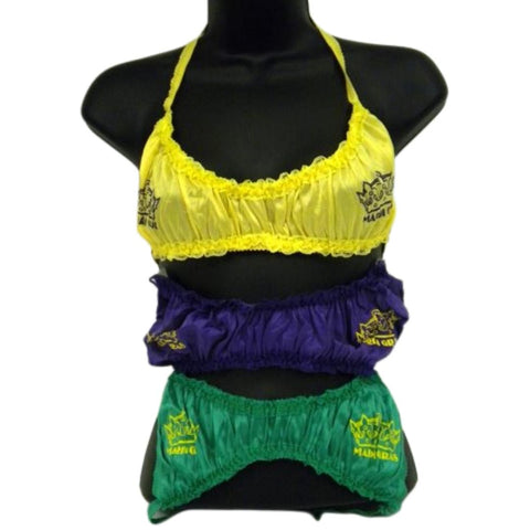 Vibrant Mardi Gras Colors: This dozen-pack of bras features assorted purple, green, and gold colors, capturing the festive spirit of Mardi Gras. The bold and eye-catching hues make these bras perfect for adding a playful and risqué touch to your celebrations.