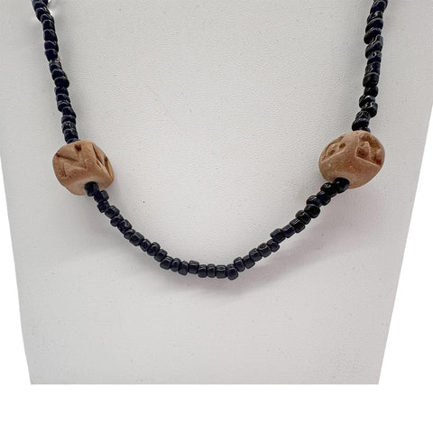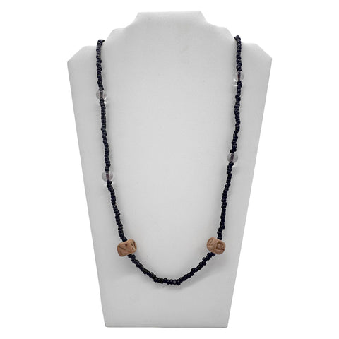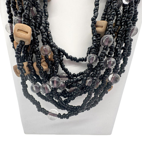 27" Purple, Yellow, and Green Assorted Glass, Wooden, and Velvet Bead Necklace
