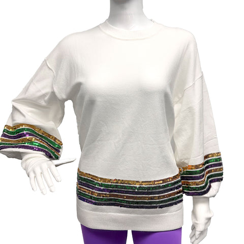 Off White Mardi Gras Sequin Trim Sweater (Each)